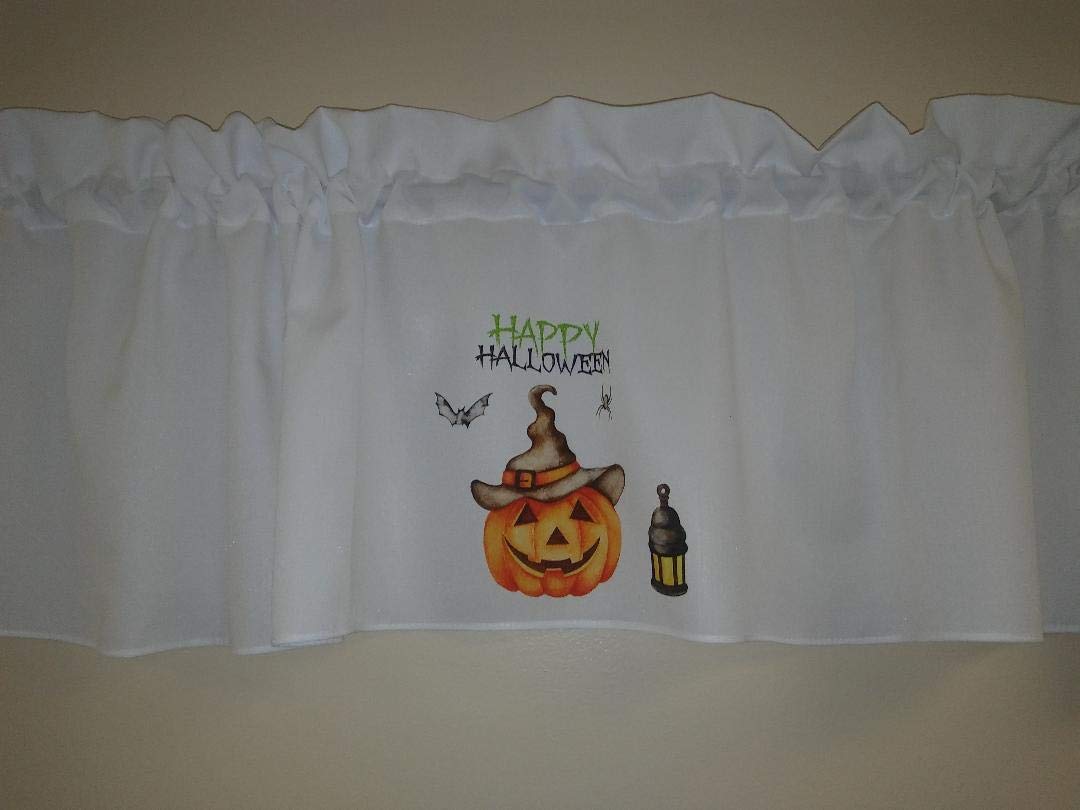 Happy Halloween valance curtain, Lantern, Spider, Bat, Pumpkin, Harvest window treatment