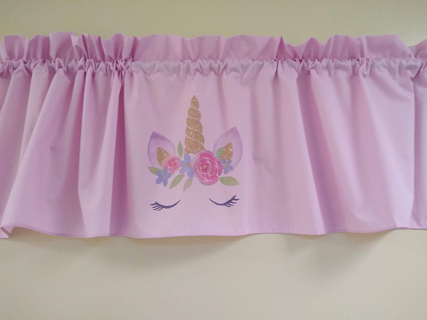 Pink Unicorns valance curtain Solid pink valance, sublimation on fabric 58 inches wide, Girls room window treatment decor, Baby Nursery, Flower unicorn Fabric