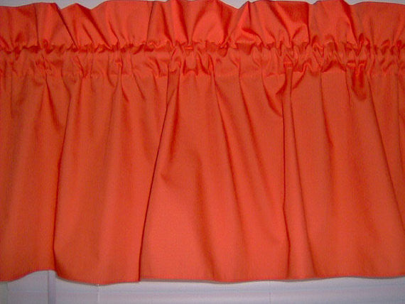Solid Orange Valance Curtain Window Treatment, 58 Inches Wide Custom rod Pocket and long. Free Shipp